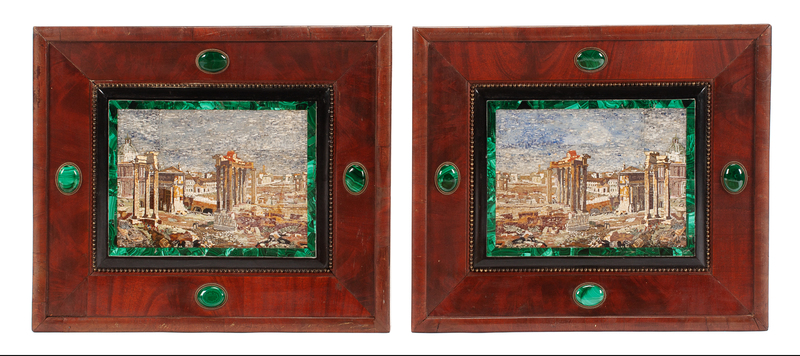 A Pair of Italian Micromosaic Panels Micromosaic: 8 5/8 x 11 5/8 inches.