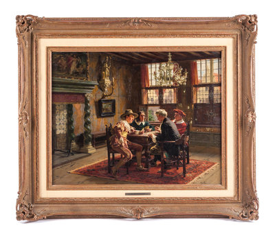 Albert Friedrich Schroder, (German, 1854-1939), Card Players