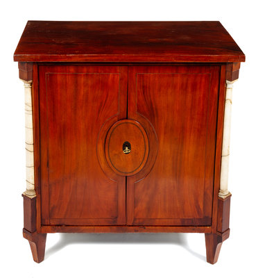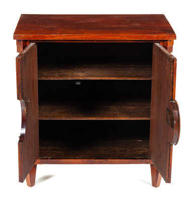 A Biedermeier Mahogany Cabinet Height 31 x width 29 1/8 x depth 18 5/8 inches.