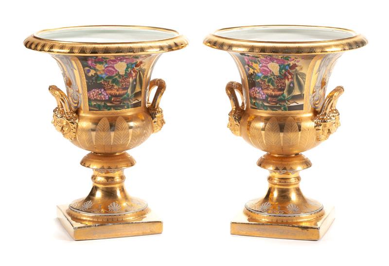 A Pair of Berlin (K.P.M.) Porcelain Urns Height 19 inches.