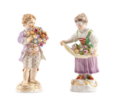 A Pair of Meissen Porcelain Figures Height 4 3/4 inches.