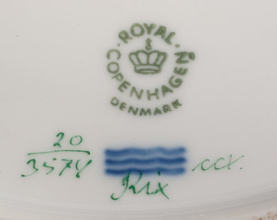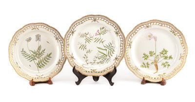A Set of Ten Royal Copenhagen Flora Danica Reticulated Plates Diameter 11 inches.