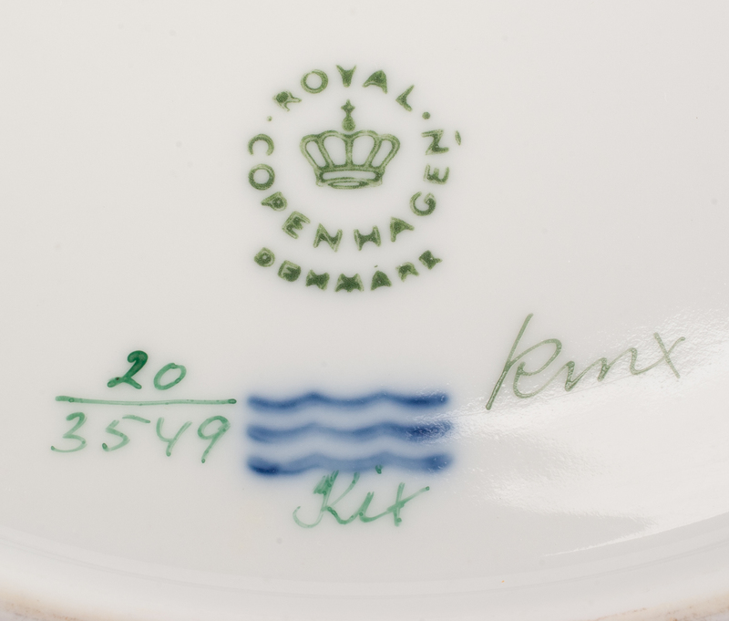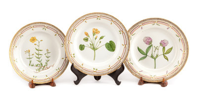 A Set of Twelve Royal Copenhagen Flora Danica Dinner Plates Diameter 10 inches.