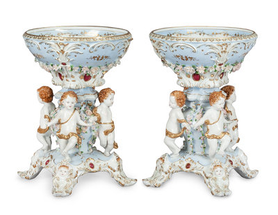 A Pair of German Porcelain Figural Compotes Height 20 x diameter 14 1/2 inches.