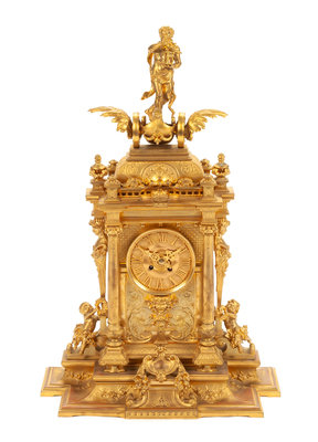 A Louis XV Style Gilt Bronze Mounted Clock Height 30 1/4 inches.