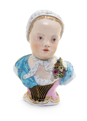 A Meissen Porcelain Bust of a Child Height 6 inches.