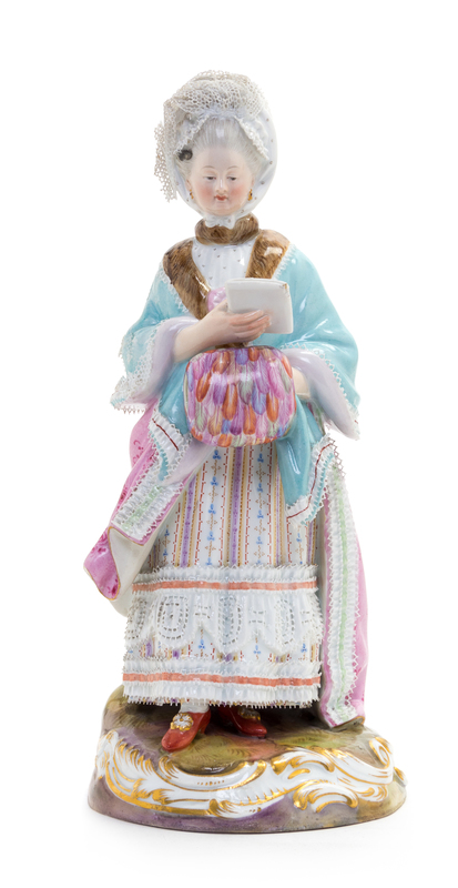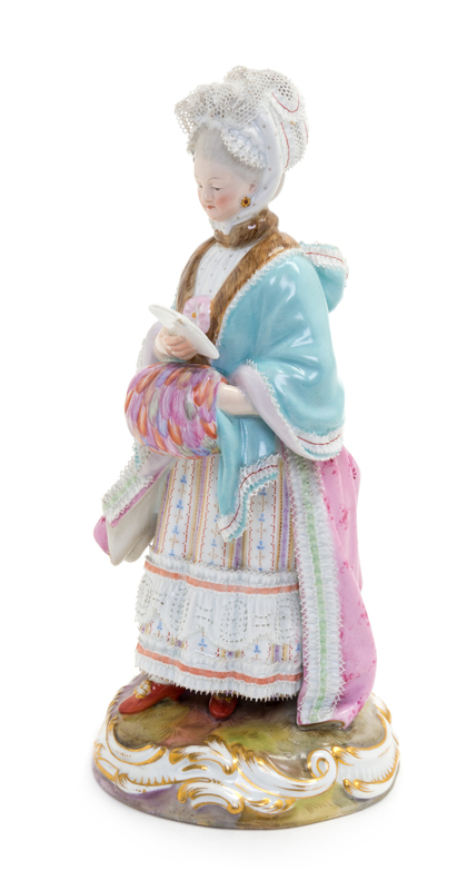 A Meissen Porcelain Figure of a Lady with a Muff Height 8 inches.