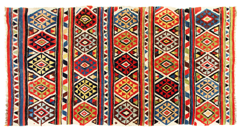 A Shirvan Kilim Wool Rug 8 feet 10 inches x 4 feet 7 inches.