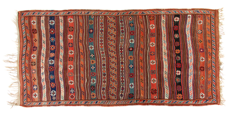 A Soumak Wool Rug 11 feet 2 inches x 5 feet 10 inches.