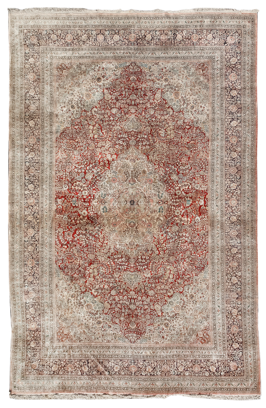 A Kirman Silk Rug 17 feet 8 inches x 11 feet 10 inches.