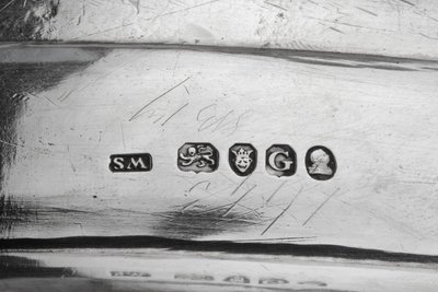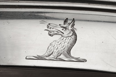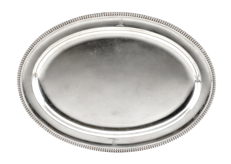 A George III Silver Tray, William Stroud, London, 1802, of oval form with a gadroon rim, the border with engraved crests.