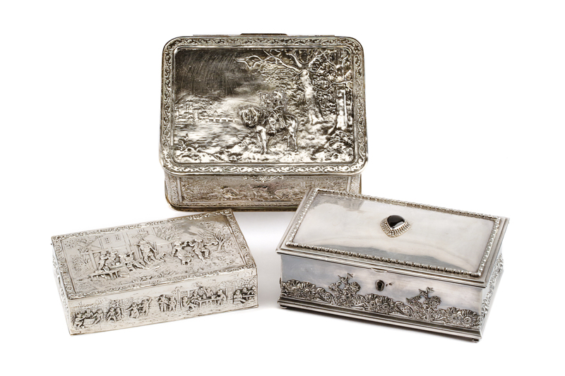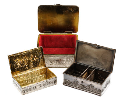 Three Silver and Silver-Plate Table Caskets, Various Makers, First Half 20th Century, comprising an Italian silver example worked to sh