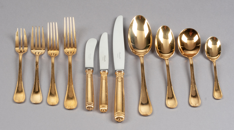 A French Gilt Silver-Plate Flatware Service, Christofle, Paris, 20th Century, Malmaison-Gold pattern, comprising: 84 dinner knives 24 l