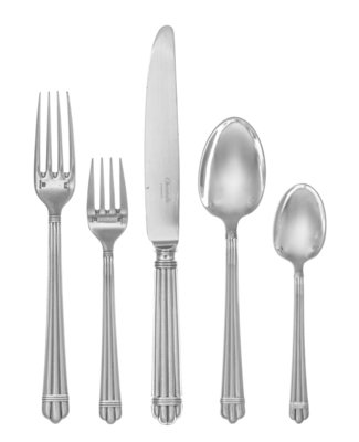 A French Silver-Plate Flatware Service, Christofle, Paris, 20th Century, Aria pattern, comprising: 15 dinner knives 10 dinner forks 10