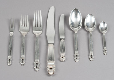 A Danish Silver Flatware Service, Georg Jensen Silversmithy, Copenhagen, 20th Century, Acorn pattern, comprising: 12 dinner knives 12 d