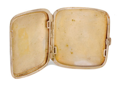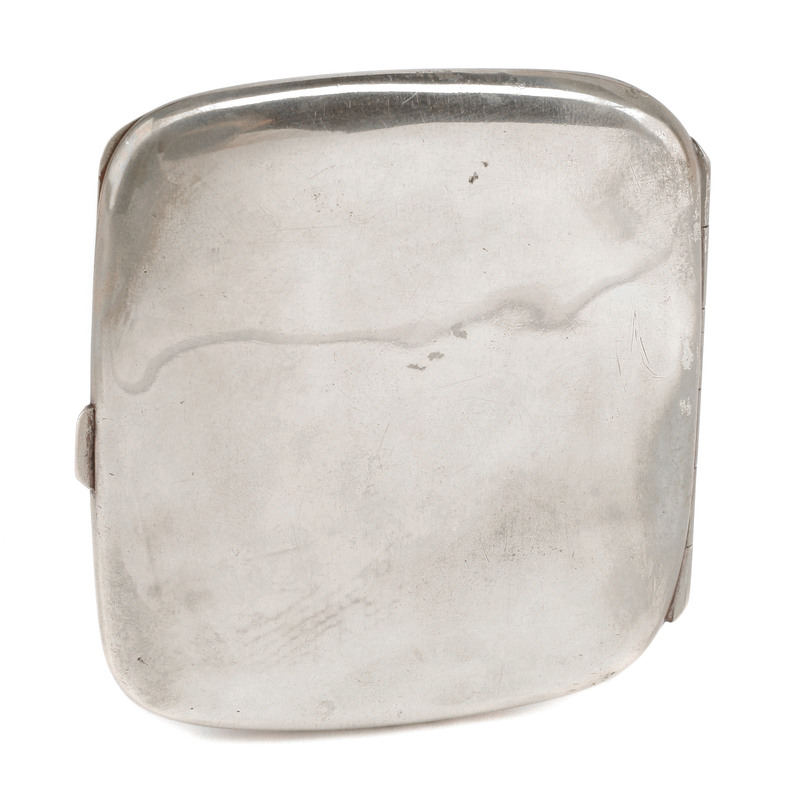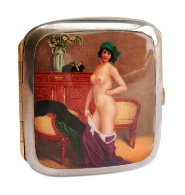 A German Enameled Silver Cigarette Case, Late 19th/Early 20th Century, the lid decorated with a female figure posing in a state of undr