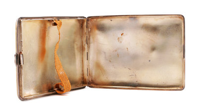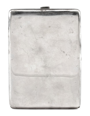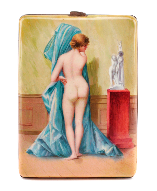 An English Enameled Silver Cigarette Case, Maker's Marks Obscured, the lid enameled to show a nude model.
