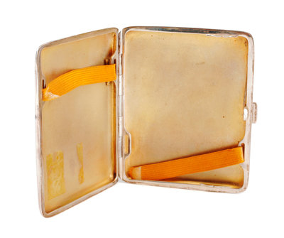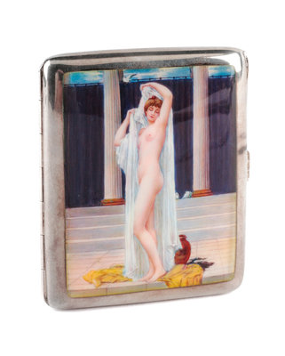 A German Enameled Silver Cigarette Case, Lutz & Wiess, Pforzheim, Late 19th/Early 20th Century, the lid enameled to show a nude model i