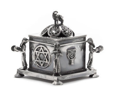 A Russian Silver Spice Box, Maker's Mark Obscured, Assay Mark O.C., Minsk, 1874, the lion form finial above the domed filigree decorate