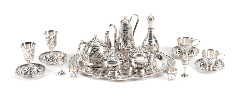 An Extensive Indian Silver-Plate Tea, Coffee and Dessert Service, Late 19th/Early 20th Century, comprising 2 coffee pots, 1 teapot, 2 c
