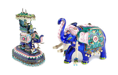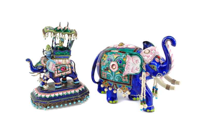Two Indian Enameled Silver Figures Width of wider example 7 1/2 inches.