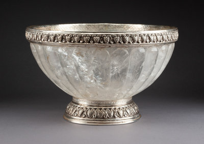 A Silver Mounted Rock Crystal Center Bowl Diameter 12 inches.