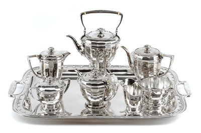 An American Silver Eight-Piece Tea and Coffee Service, Tiffany & Co., New York, First Half 20th Century, Saint Dunstan pattern, compris