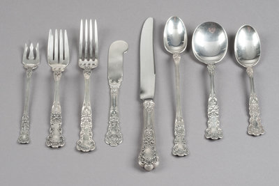 An American Silver Flatware Service, Gorham Mfg. Co., Providence, RI, Buttercup pattern, comprising: 12 luncheon knives 12 luncheon for