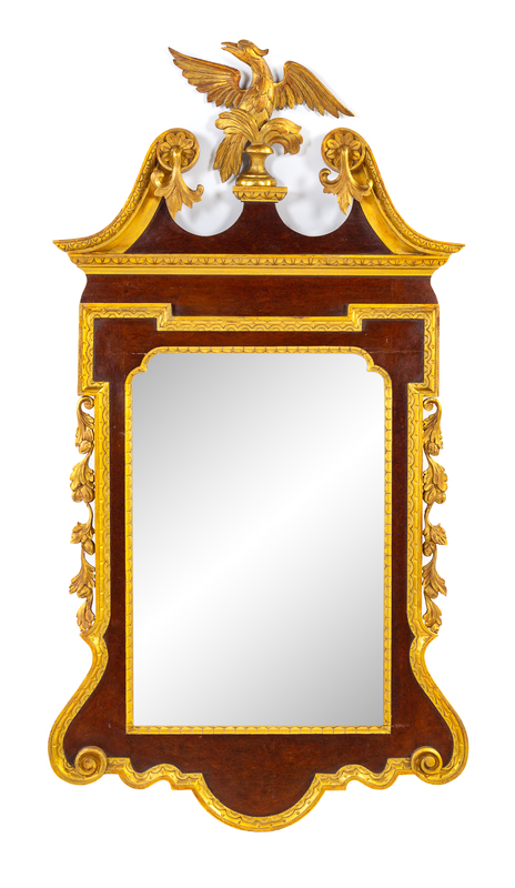 A George II Style Parcel Gilt Mahogany Mirror Height 55 x width 28 3/8 inches.