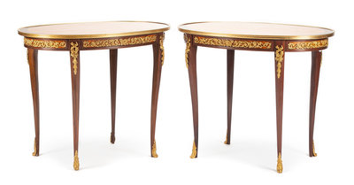 A Pair of Louis XV Style Gilt Bronze Mounted Side Tables Height 29 1/2 x width 36 1/2 x depth 25 inches.