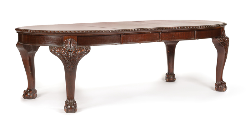 A George III Carved Mahogany Dining Table Height 29 x width 44 inches (closed).