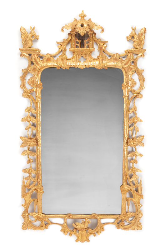 in the Chinese Chippendale taste, the crest with figures of squirrels flanking a cupola.