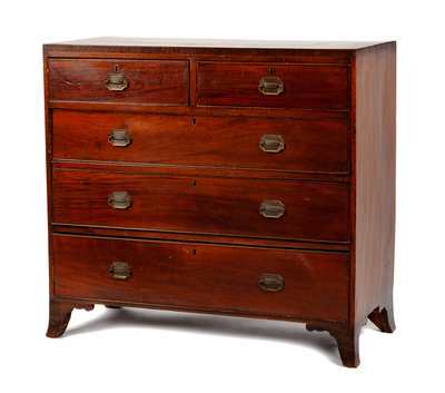 A Georgian Style Mahogany Chest of Drawers Height 38 5/8 x width 41 1/2 x depth 18 3/4 inches.