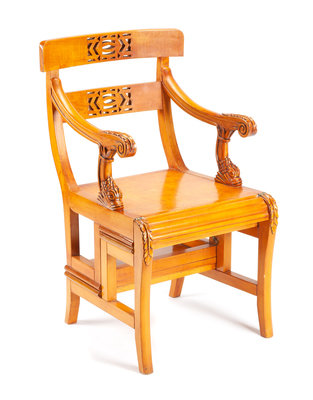 A Georgian Style Burlwood Metamorphic Library Chair Height 37 1/2 inches.