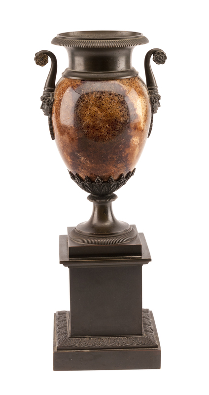 An English Bronze Mounted Blue John Urn Height 15 1/2 inches.