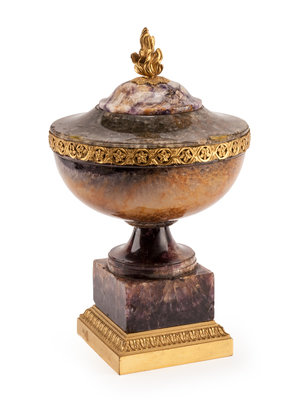 An English Gilt Bronze Mounted Blue John Urn Height 13 1/2 x diameter 8 inches.