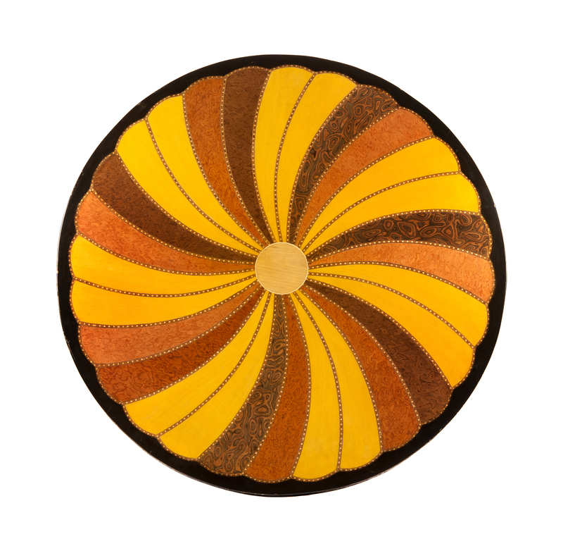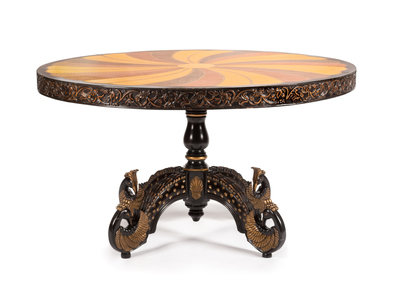 An Anglo-Colonial Style Various Woods Center Table Height 32 1/2 x diameter of top 54 1/4 inches.