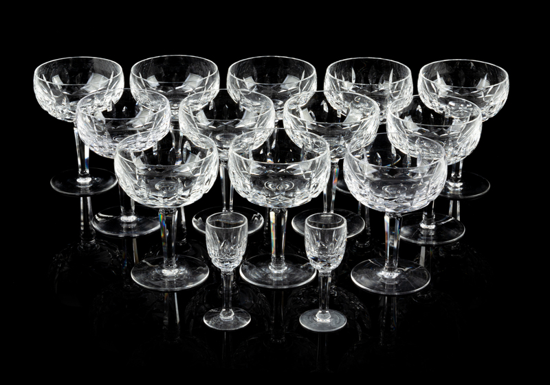A Waterford Cut Glass Stemware Set Height of champagne coupe 5 1/4 inches.