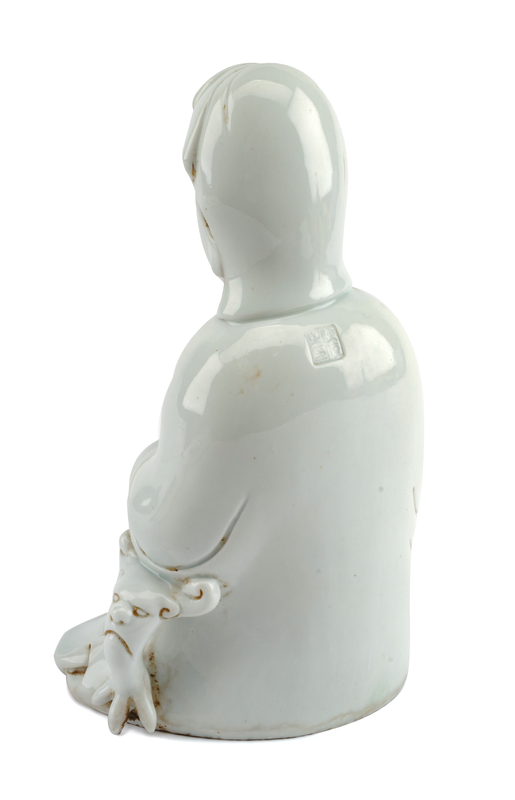 depicting a seated Guanyin, with an impressed mark to the underside.