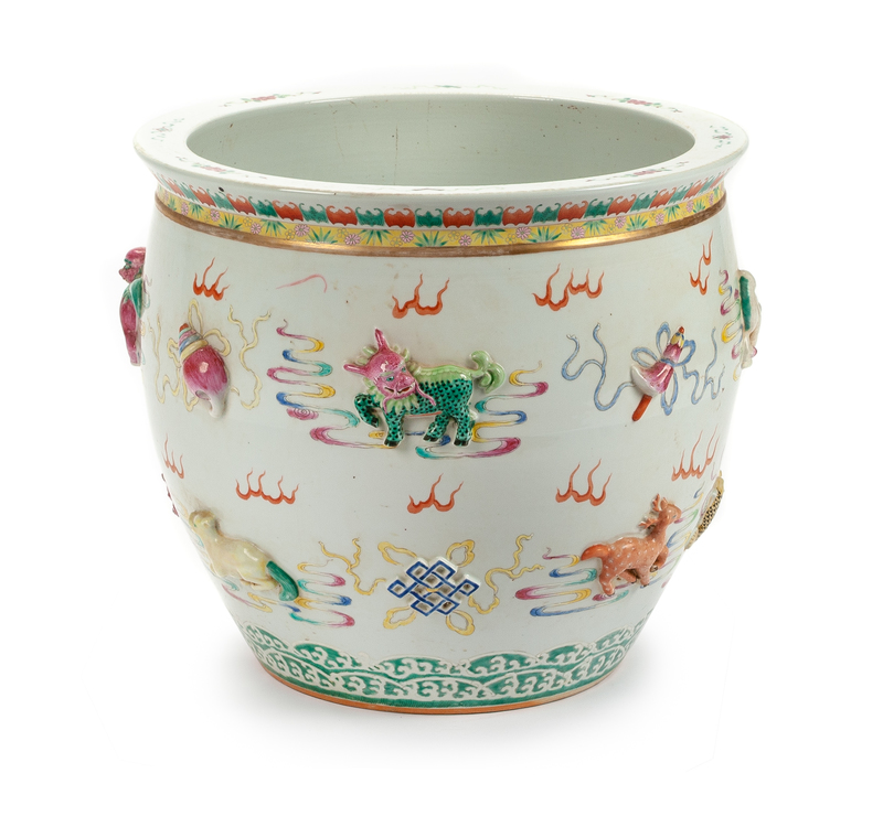 A Chinese Porcelain Fish Bowl Height 19 1/2 x diameter 22 inches.