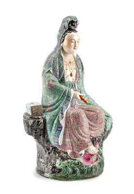 A Chinese Enameled Porcelain Figure Height 25 inches.