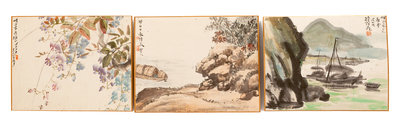 A Chinese School Folio of Paintings and Calligraphy Largest: 11 1/4 x 15 1/2 inches.