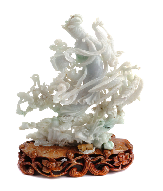 A Chinese Carved Jadeite Figure Height 7 inches.