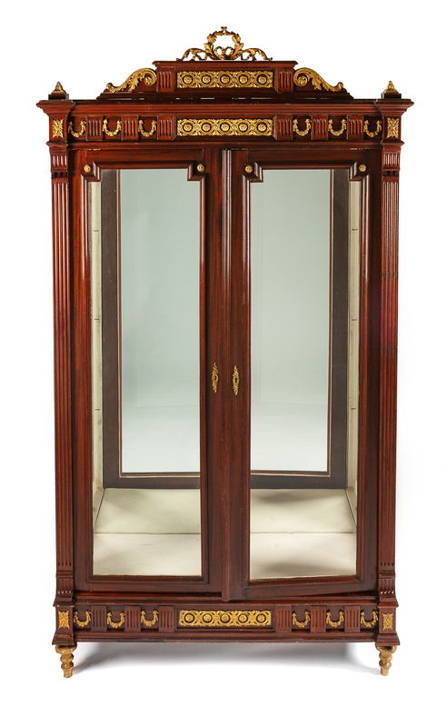 A Louis XVI Style Gilt Bronze Mounted Mahogany Vitrine Height 95 x width 53 x depth 18 inches.