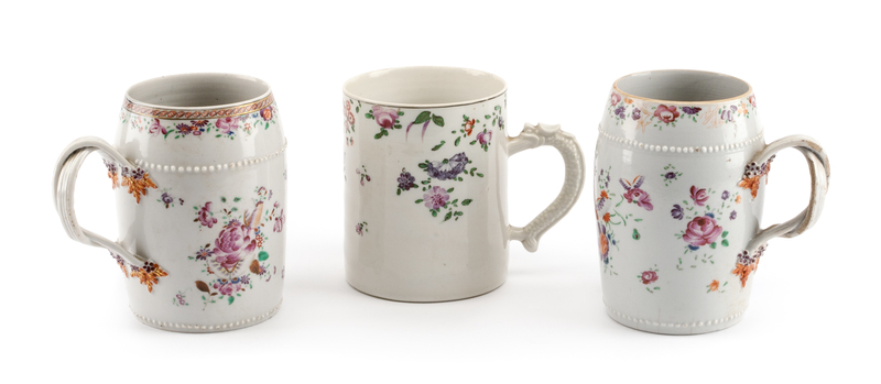 Three Chinese Export Porcelain Mugs Height of tallest 6 inches.
