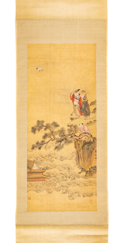 A Chinese Scroll Painting 39 x 16 inches.