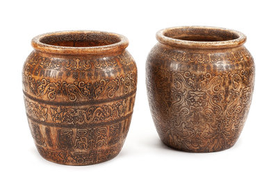 A Pair of Chinese Carved Marble Jardinieres Height 19 x diameter 18 inches.
