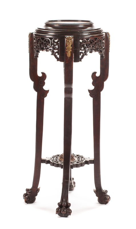 A Chinese Bronze Mounted Pedestal Height 44 x width 24 inches.