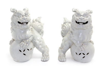 A Pair of Japanese Ceramic Temple Lions Height 20 1/2 inches.