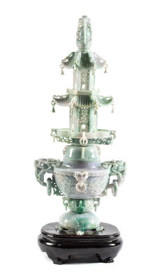 A Burmese Jade Censer Height 27 x width 12 inches.